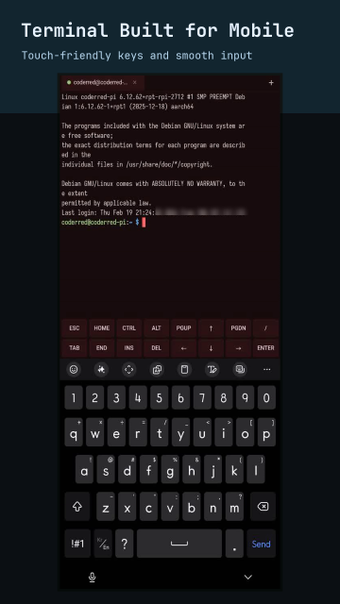 redTerm - SSHターミナルのクリップボードから直接サーバーに画像をアップロードする能力。それは接続を安全に保存するので、毎回パスワードを入力する必要がありません。キーボードレイアウトは小さな画面用に作られており、長いコマンドを入力するのが平均的なユーザーにとってはるかに簡単です。